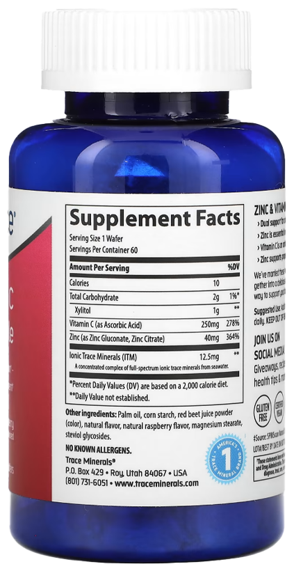 Trace Minerals Zinc + Vitamin C Chewable, 60 таблеток