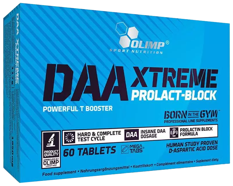 Тестостероновый бустер DAA Xtreme Prolact Block от Olimp стимулирует синтез тестостерона в мужском организме, подавляя при этом активность таких гормонов как эстроген и пролактин. Тем самым, он поддерживает высокую физическую активность и способствует росту мышечной массы. Он является полностью безопасным, и прекращать его прием можно в любое время, не боясь получить гормональный дисбаланс в теле.