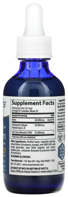 - Общая поддержка организма: Комбинация биотина, коллагена и ионных микроэлементов предоставляет комплексный подход к поддержанию здоровья волос, кожи и ногтей, а также поддерживает общий минеральный баланс в организме.