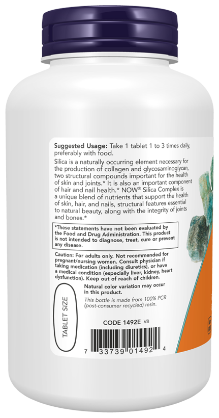 NOW Silica Complex - это уникальная смесь питательных веществ, поддерживающих кожу, волосы и ногти, т.е. частей организма, отвечающих за красоту, а также укрепляющих суставы и кости.