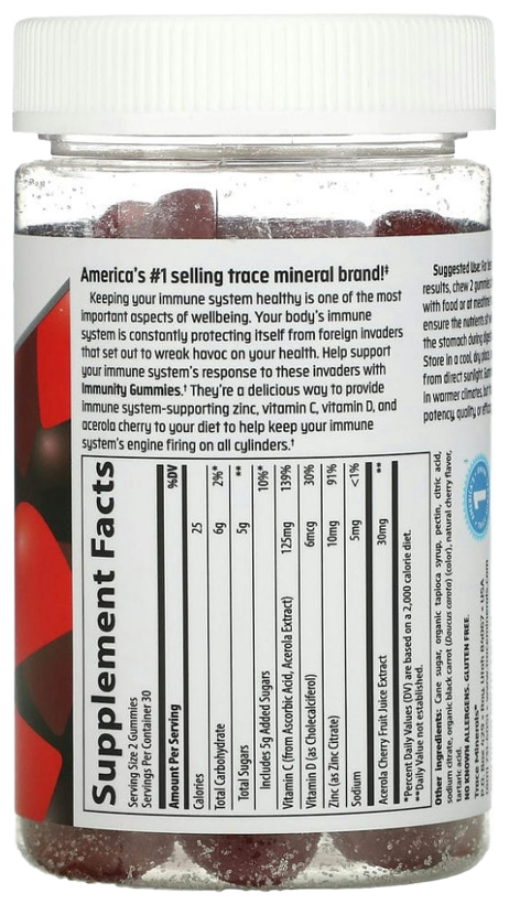 Здоровье иммунной системы - один из важнейших аспектов хорошего самочувствия. Иммунная система постоянно защищает организм от инородных захватчиков, которые вредят здоровью. Поддержите иммунную систему с помощью жевательных таблеток Immunity Gummies. Это восхитительный способ добавить в свой рацион цинк, витамин C, витамин D и ацеролу, чтобы поддерживать работу иммунной системы с максимальной эффективностью.