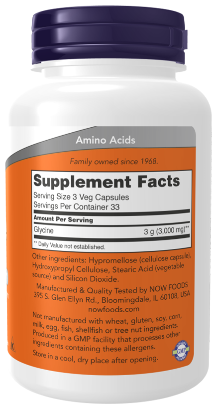 Глицин - наименьшая и простейшая аминокислота, которая благодаря своим свойствам широко используется для различных целей. Глицин необходим для выработки глутатиона, ДНК, креатина, желчи, гемоглобина и большинства белков. Кроме того, он способствует отложению гликогена, создавая таким образом больше глюкозы для выработки энергии. Глицин также играет роль успокаивающего нейромедиатора в мозгу, обеспечивая передачу нервных импульсов. Кроме того, он необходим для поддержания нормальных фаз сна.