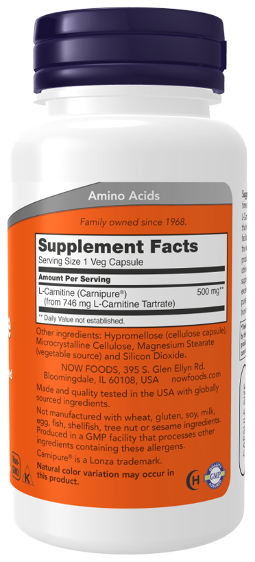 NOW L-Carnitine / L-Карнитин 500 mg (60 vegcaps)