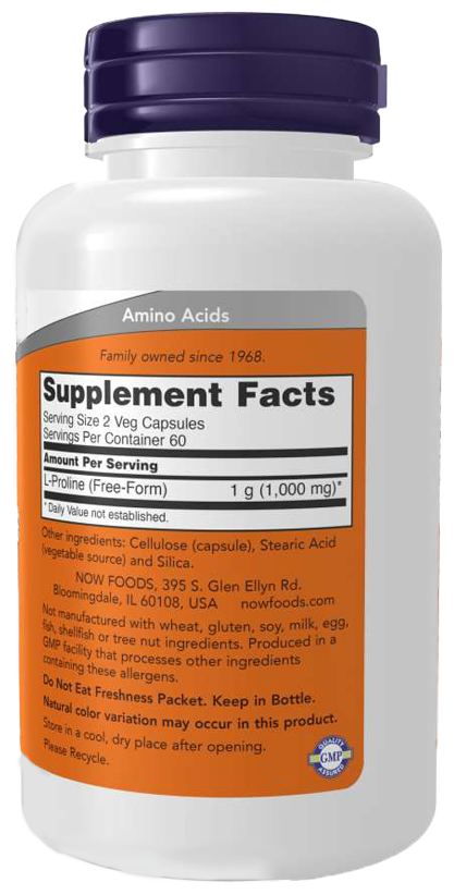 NOW L-Proline / L-Пролин 500 mg (120 vegcaps)