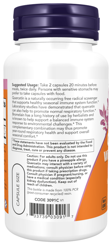 Quercetin with Bromelain - это насыщенный питательный комплекс. В его основе мощный биофлавоноид, полученный Софоры японской, и комплекс ферментов из стебля ананасов. Компоненты действуют в синергии и быстро метаболизируется в организме.