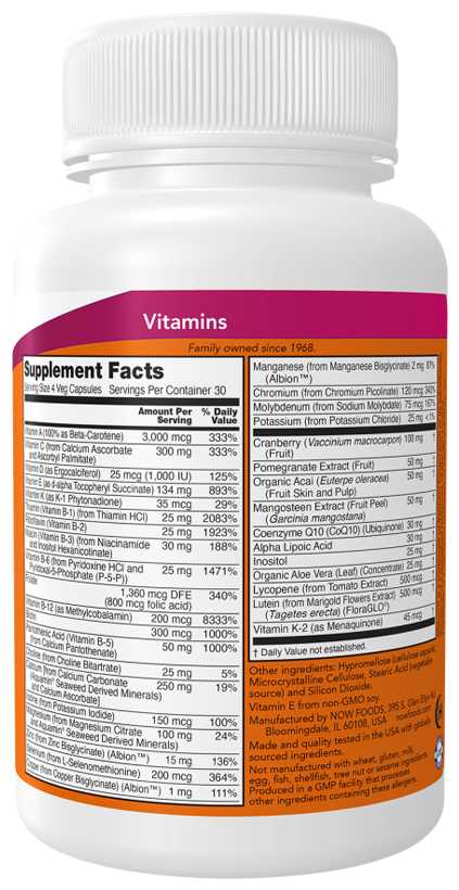 | Витамин А (100% в виде бета-каротина) | 3000 мкг | 333% |